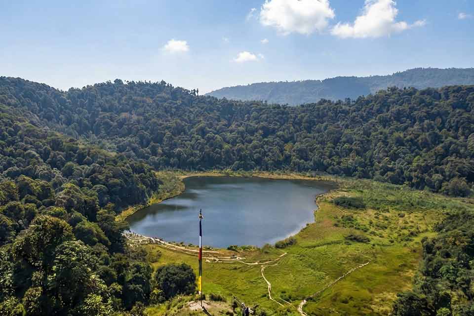 Experience deep tranquility at Khecheopalri Lake, the legendary "wish-fulfilling" lake hidden in a sacred forest.